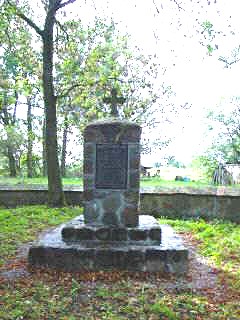 oben befindet sich ein Kreuz, vorne eine Bronzetafel mit den Namen der Gefallenen.