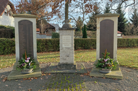 rechte Stele mit Namen der Göritzer Gefallenen und Vermissten, geordnet nach Todesdatum.