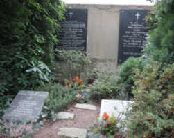 An einer Seite dieser Anlage ist eine Art Sarkophag mit einer Widmung zu sehen. In unmittelbarer Nähe stehen vereinzelt einige Kreuze für Gefallene des Zweiten Weltkriegs.