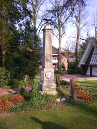 Das Denkmal für die Feldzüge von 1861 bis 1870/71 wird durch vier in die Erde eingelassene Kanonenrohre, die miteinander durch Ketten verbunden sind, eingerahmt.