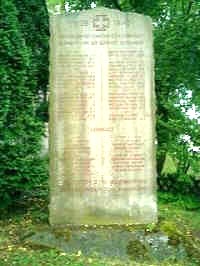 Hinter der Kirche drei Denkmäler nebeneinander: 1870/71, 1914/18 und 1939/45.