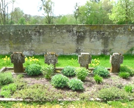Ehrenanlage auf dem Gemeindefriedhof, bestehend aus einer Vierergruppe von Soldatengräbern und einem einzelnen Soldatengrab.