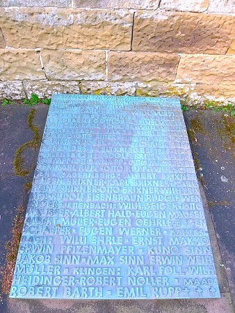 rechteckigen Bronzetafel mit den Vor- und Zunamen der Gefallenen aus den einzelnen Teilorten.