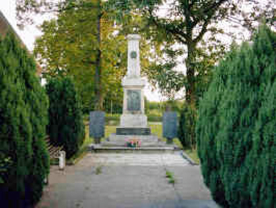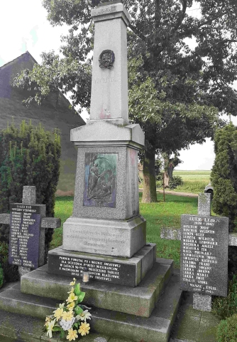 Denkmal für Gefalle des 1. Weltkrieges, der oberschlesischen Abstimmungskämpfe sowie des 2. Weltkrieges am Dorfplatz.