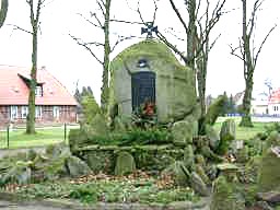 In der Ortsmitte ein großer Findling, auf der Spitze ein Eisernes Kreuz, gegossene Tafel mit Inschrift.