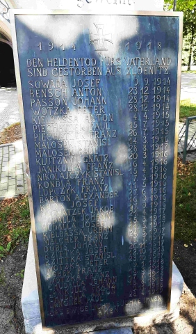 Das auf der einen Gedenktafel des 1. Weltkriegs angegebene Zloenitz (Zlönitz) wurde 1936 in Glockenau umbenannt, daher die verschiedenen Ortsangaben.