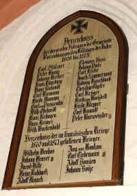 In der St.-Marien-Kirche eine Holztafel für die Freiheitskriege 1808-1814 und 1870/71