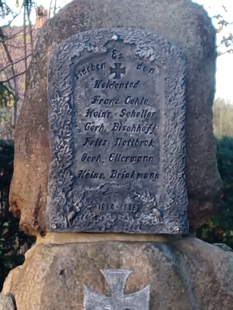 | ELLERMANN | Gerhard | Es gibt zwei Personen, die infrage kommen; 1. G. E. geb. 26.07.1894 Herzebrock, gef. 02.03.1915 bei Perthes (les-Hurlus) oder2. G.E geb. 28.08.18.. Rheda, Wiedenbrück, gef. 02.12.1917 Paschendaele | ||||