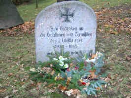 Im Kopf des Steines ist ein Deutsches Kreuz eingearbeitet und darunter Inschrift.