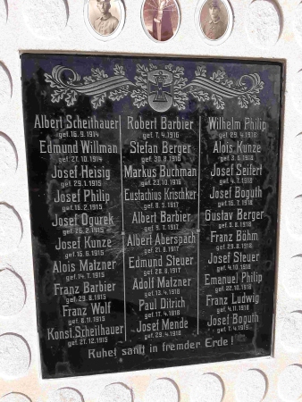 Denkmal für die Gefallenen des 1. Weltkriegs hinter der Kirche.