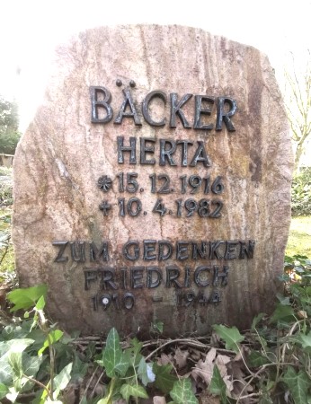 Urnenhain Abt. 106; Zum Gedenken; Ehemann von Herta Bäcker, geb. Petri (1916-1982); Sterbeeintrag Standesamt I Berlin West Nr. 4545/59 |