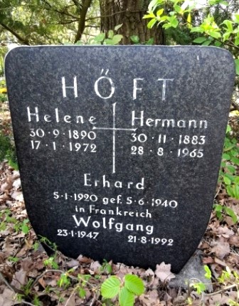Urnenhain Abt. 104; Abiturient; Sohn von Hermann Höft (1883-1965) und Helene Höft, geb. Hehne (1890-1972); Kriegsgräberstätte Bourdon, Block 2 Reihe 10 Grab 389 |
