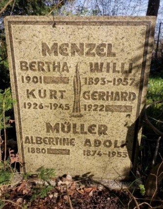 Urnenhain Abt. 103; Mechanikerlehrling, gefallen durch Granateinschlag; Sohn von Wilhelm (Willi) Menzel (1893-1957) und Bertha Menzel, geb. Müller (geb. 1901) |