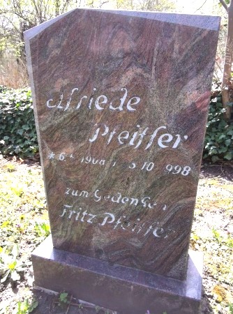 Zum Gedenken; Ehemann von Elfriede Pfeiffer, geb. Kowitz (1908-1998); Vorname: Friedrich |