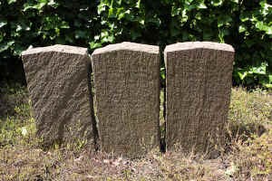 Hinter der Kapelle eine Reihe Steintafeln in Dreiergruppen (Zweiter Weltkrieg), sowie ein Gedenkstein für russische Soldaten.