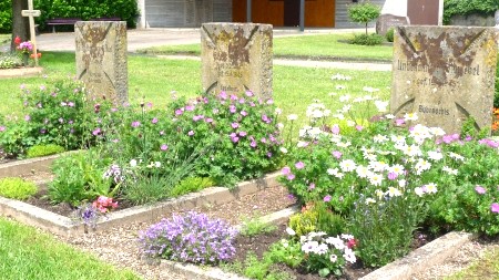 Drei einzelne Soldatengräber von den in den Abwehrkämpfen, Mitte 1945, im Bereich Bubenorbis gefallenen Wehrmachtsangehörigen