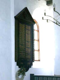 In der Kirche von Bülderup eine geschnitzte Gedenktafel für die 34 Kriegstoten des Ersten Weltkrieges.