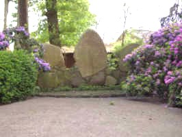 Anlage an der Eichenstraße. An der Stirnseite sind drei große behauene Findlinge errichtet.