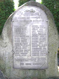 Gusseiserne Platte auf einem Findling innerhalb einer kleinen Anlage im Dorfzentrum.