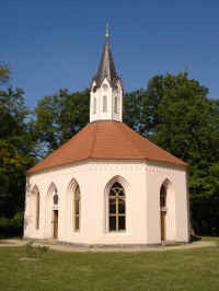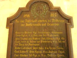 Kirche an der B 96, erbaut 1819 bis 1821, erneuert 1994. In der Kirche zwei Holztafeln.