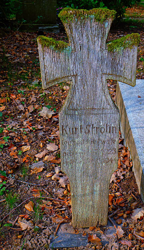 Holzkreuz für einen Gefallenen auf der Grabstätte der Eltern.