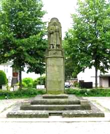 Das Kriegerdenkmal steht hinter der St. Mauritius Kirche, Am Kirchplatz, mittig am unteren Rand der alten Kirchenburg.