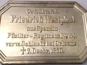 Füsilier | WESTPHAL | Friedrich | Spendin | 07.12.1870 Artenay, Lazarett |