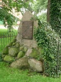Ehrenmal für den Feldzug 1870/71: Aus Feldsteinen aufgemauerter Sockel mit Findling, darauf Tafel mit Inschrift.