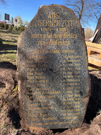 Am ersten April-Wochenende 2025 wurde nach ca. 80 Jahren das Kriegerdenkmal in Dolgen, Kreis Dramburg
