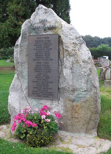 Auf dem Friedhof Steinfindling mit Gedenkplatte