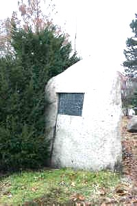 Naturstein mit Gedenktafel im Park hinter dem Kulturhaus.