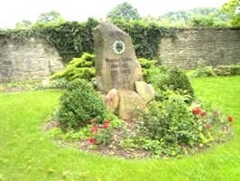 An der Außenseite der Gutshofmauer das Ehrenmal für die Kriegstoten beider Weltkriege.