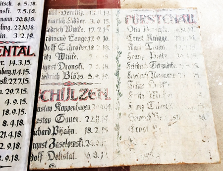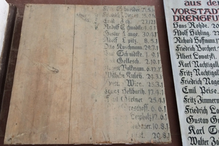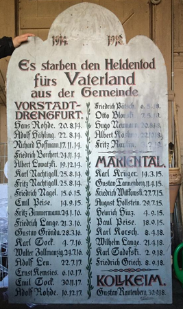 Ehemals vier Gedenktafeln für die Gefallenen der Orte des Kirchspiels Drengfurth.
