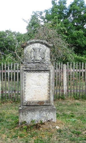 Das Kriegerdenkmal aus Sandstein steht ungepflegt und stark verwittert auf dem Friedhof des Ortes.