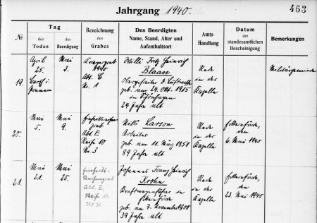 Arbeiter, E: Arbeiter Ernst W. u. Kath. geb. Jensen, m. mil. Ehren beigesetzt | |