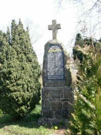 Vor dem Kirchhof von Eckwatt in einer kleinen Anlage ein großer Findling auf gemauertem Feldsteinsockel mit einer schwarzen Tafel. Auf der Spitze ein steinernes Kreuz.