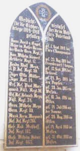 Holztafel in der Kirche für die Gefallenen des Ersten Weltkrieges.