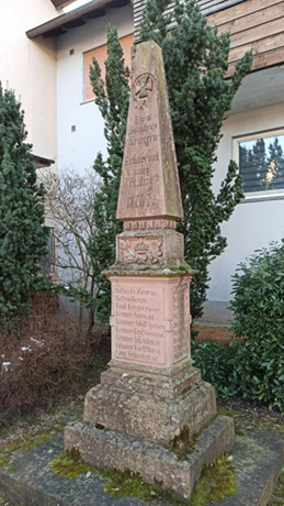 In der Ortsdurchfahrt steht das Denkmal für den Feldzug 1870/71: ein Steinsockel mit pyramidenförmigem Aufsatz,