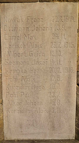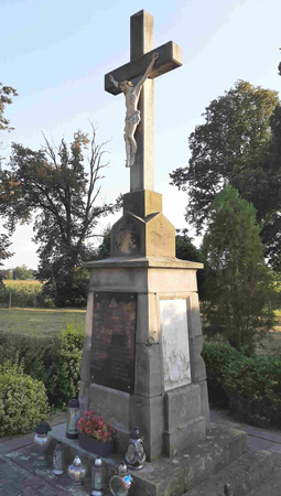 Stele mit Kreuz oben. An den Seiten die Namen der Gefallenen des 1. Weltkrieges.