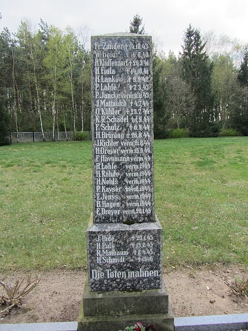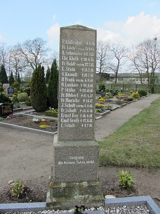 Zwei Stelen auf dem Friedhof für die Gefallenen beider Weltkriege.