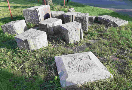 Das Denkmal wurde nach 1945 umgestoßen und verscharrt. Im Jahre 2006 wurden die Teile ausgegraben und im Kreis arrangiert.