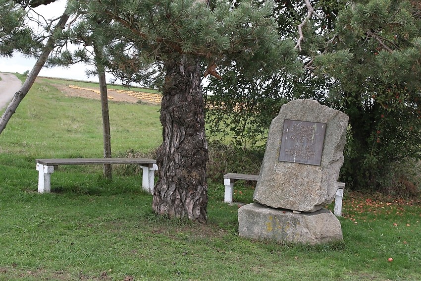Denkmal an der Straße nach Tschechien: Naturstein mit Gedenktafel.