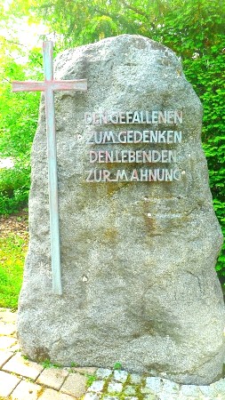 aus feinkörnigem hellem Granit auf denen - nach Jahren geordnet - die Vornamen und Namen der Gefallenen/Vermissten von Fichtenberg festgehalten sind.