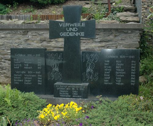 Steinkreuz mit daran angefügten Gedenksteinen.
