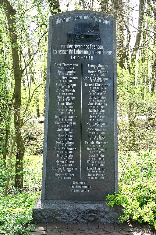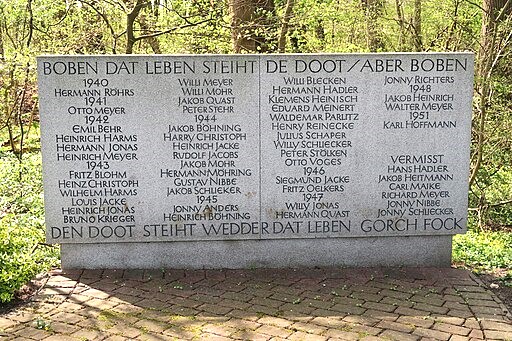 Gedenksteine für die Gefallenen der beiden Weltkriege in Hamburg-Francop am Gutsbrack.