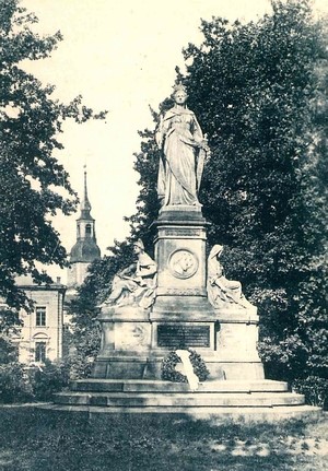 Verkünderin des Friedens dar, die trauernd um die geliebten Toten eine Palme neigte. Am Postament der Hauptfigur zeigte ein Medaillon die