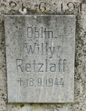 Erinnerungstafel an Grabkreuz von Musketier Werner Retzlaff |