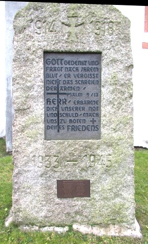 In den Granitblock sind oben die Jahreszahlen des Ersten Weltkrieges mit einem Eisernen Kreuz dazwischen eingeschlagen. Darunter ein Psalmzitat.
