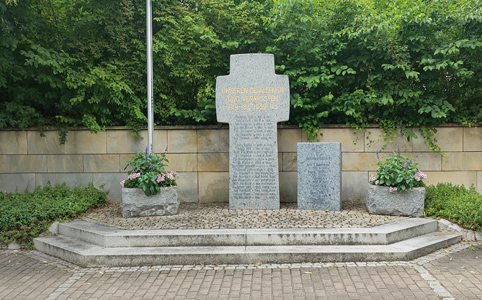 Denkmal in Kreuzform an der Dorfstraße für die Gefallenen und Vermissten aus Frimmersdorf.