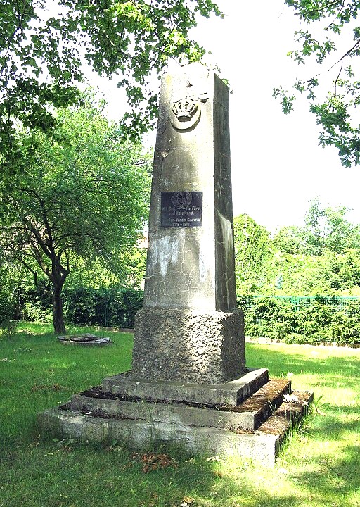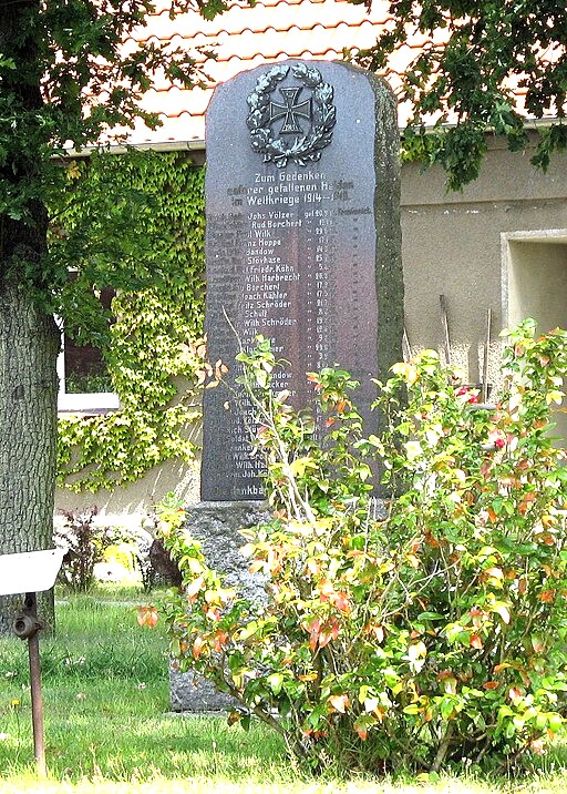 Stele aus Granit auf zweistufigem Granitsockel für den Ersten Weltkrieg.